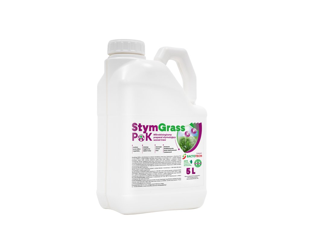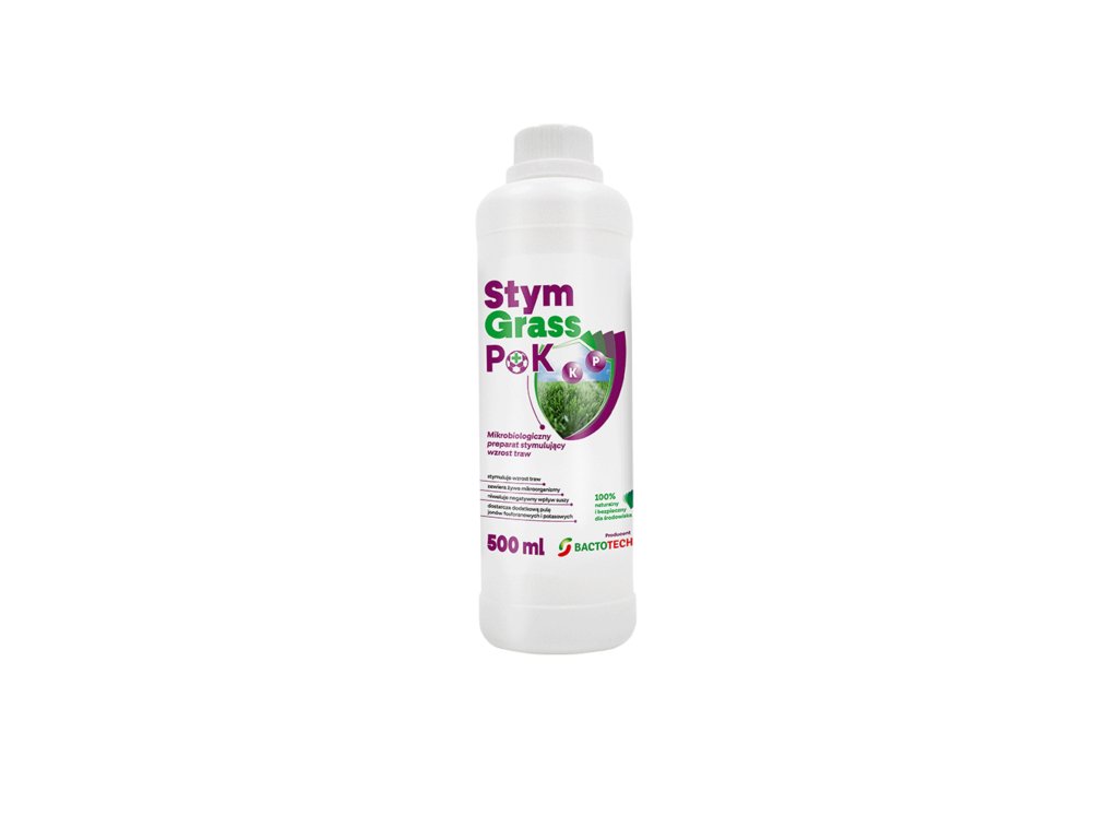 StymGrass P+K je mikrobiologický přípravek na stimulaci růstu trávy a jiných plodin. Kmene bakterií z rodu Bacillus používané v přípravku StymGrass P+K stimulují vývoj kořenového systému trav, podporují růst a snižují negativní účinky stresu ze sucha. Bakterie přítomné v přípravku zpřístupňují dodatečné zásoby fosfátů a draselných iontů. Organický nosič vytvořený přirozenými mikrobiálními procesy během aplikace na list poskytuje trávníku dodatečnou zásobu aminokyselin. Účinek přípravku je založený na přirozených přírodních procesech a nepředstavuje žádné riziko přehnojení. Složení je 100% organické, bezpečné pro človeka i životní prostředí.