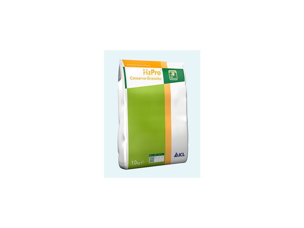 Granulované trávníkové smáčedlo H2Pro Conserve Granules výrazně snižuje nároky na závlahu díky obsahu povrchově aktivních látek, které pomáhají zadržovat vodu. Mají jedinečné kurativní i preventivní účinky při výskytu suchých míst. Granulované trávníkové smáčedlo H2Pro používá jako nosič Biodac (volně tekoucí, bezprašný celulózový komplex), který granulát rychle rozkládá a uvolňuje do kořenové zóny.