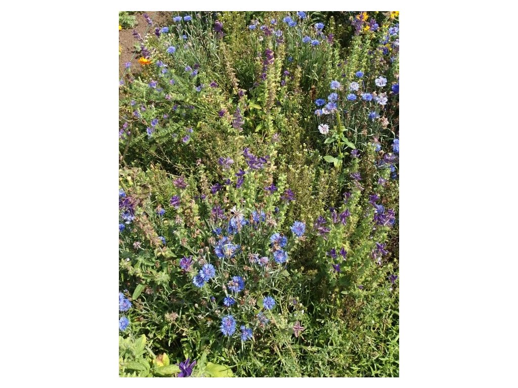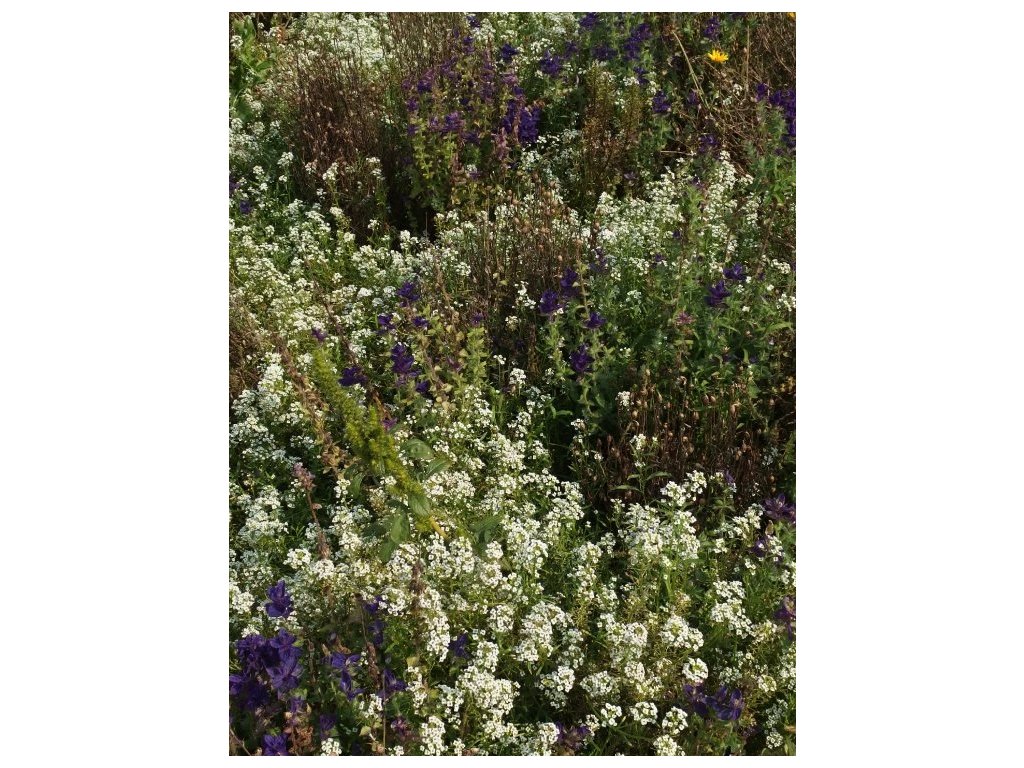 Nosné druhy letniček ve směsi: Ipomea (Povijnice), Salvia (Šalvěj), Centaurea (Chrpa), Lobularia (Laločnice)