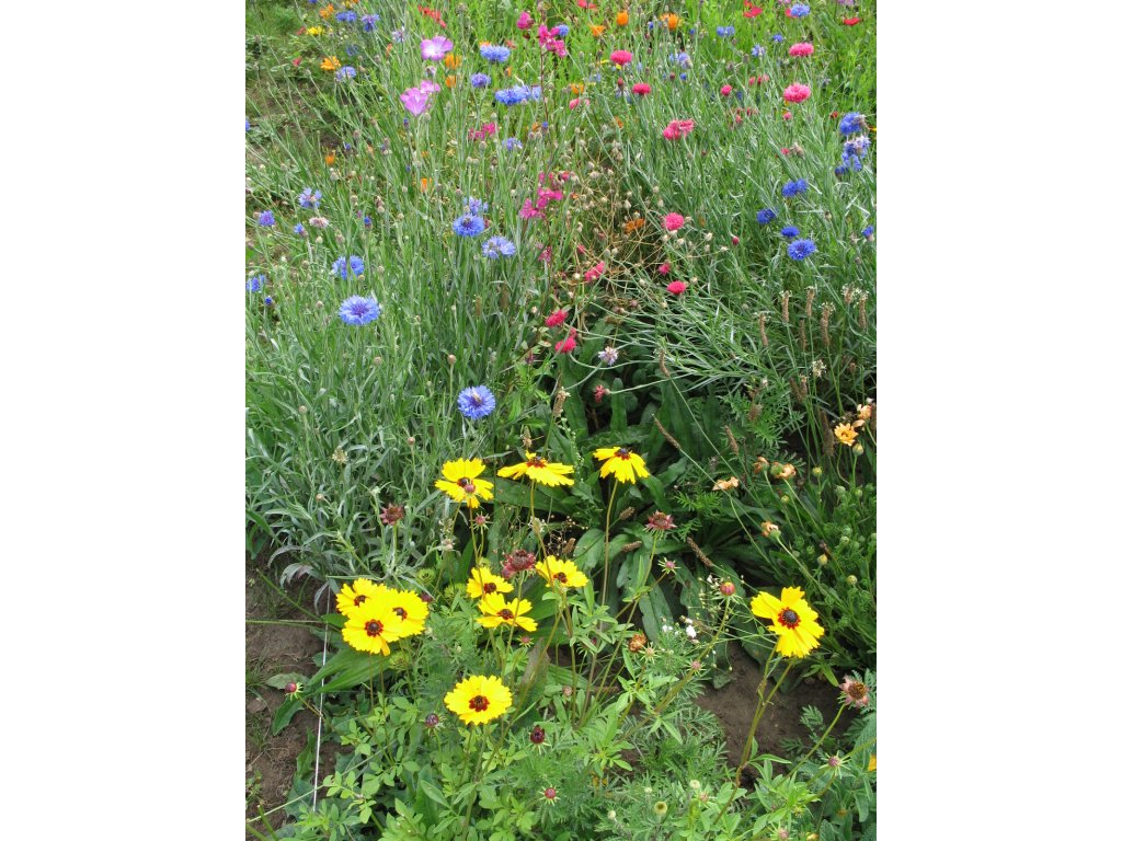 Letničky 30 %: koukol polní (Agrostemma githago) 3,2 %, měsíček lékařský (Calendula officinalis ´Plamen´) 0,6 %, měsíček lékařský (Calendula officinalis ´Fiesta Gitana´) 4,2 % chrpa modrá (Centaurea cyanus) 1%, ostrožka stračka (Consolida regalis) 1,4 %, krásnoočko barevné (Coreopsis tinctoria ´Roulette´) 1,6 %, kosmídium (Cosmidium burridgeanum ´Brunette´) 2 %, dvoutvárka oranžová (Dimorphotheca aurantica´Mixture´) 3,2 %, sluncovka kalifornská (Eschscholzia californica ´Orange King´) 0,8 %, sluncovka kalifornská (Eschscholzia californica ´Směs´) 2,4 %, šáter ozdobný (Gypsophilla elegans ´Coven Garden Market´) 0,4 %, kopretina kýlnatá (Chrysanthemum carinatum ´Polárka´) 0,2 %, len vytrvalý (Linum perenne) 1 %, tabák křídlatý (Nicotiana alata ´Tinkervells F2´) 2,2 %, mák setý (Papaver somniferum ´Danish Flag´) 0,9 %, jazylka chobotnatá (Salpiglossis sinuata ´Bolero Mix´) 1,0 %, šalvej šarlatová (Salvia coccinea ´Lady in Red´) 0,4%, šalvej zahradní (Salvia horminum ´Tricolor Mix´) 1,3%, kravinec polní (Saponaria vaccaria ´Pink beauty´) 1,7 %