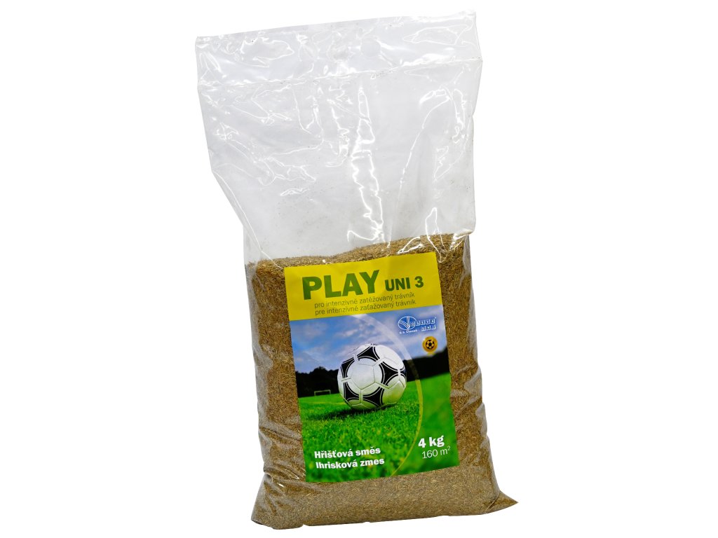 UNI 3 PLAY Exkluzivní hřišťová travní směs s vyšším podílem lipnice luční je připravena z travních druhů a odrůd nejlépe snášejících sešlapávání a rychle regenerujících po poškození. Vhodná je zejména pro zásev hřišťových trávníků, ale i pro zatravnění ostatních silně zatěžovaných ploch.